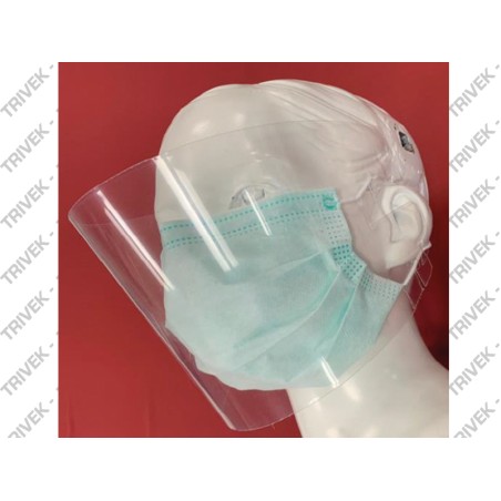 Schermo in PVC super-trasparente adattabile ad ogni tipo di mascherina dotata di elastici. Agganciato alla mascherina previene il passaggio di ogni tipo di liquido proteggendo chi lo indossa. Aggancio alla mascherina regolabile in 3 posizioni. Dimensioni 34 x 13,5 cm Spessore 0,20 mm