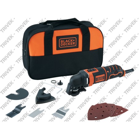 Facile cambio degli accessori grazie all'attacco Superlok: utilizzo più semplice e veloce e senza uso di chiavi. Fornito di adattatore per accessori delle principali marche. 10.000-22.000 orbite/minuto, velocità ideale per avere un ottimo controllo e risultato in ogni applicazione. In modalità levigatura si ha un sistema integrato per estrazione polvere che permette di avere sempre un ambiente di lavoro pulito. Ideale per una serie di applicazioni di fai da te, tra le quali tagliare, levigare, rimuovere e raschiare. In dotazione:. Adattatore universale per altri marchi di accessori. Platorello per levigare con sistema integrato per aspirazione polvere. Lama per taglio di precisione. Lama semicircolare segmentata. Raschietto rigido. Raschietto flessibile. 6 fogli per levigatura. Borsa porta utensili